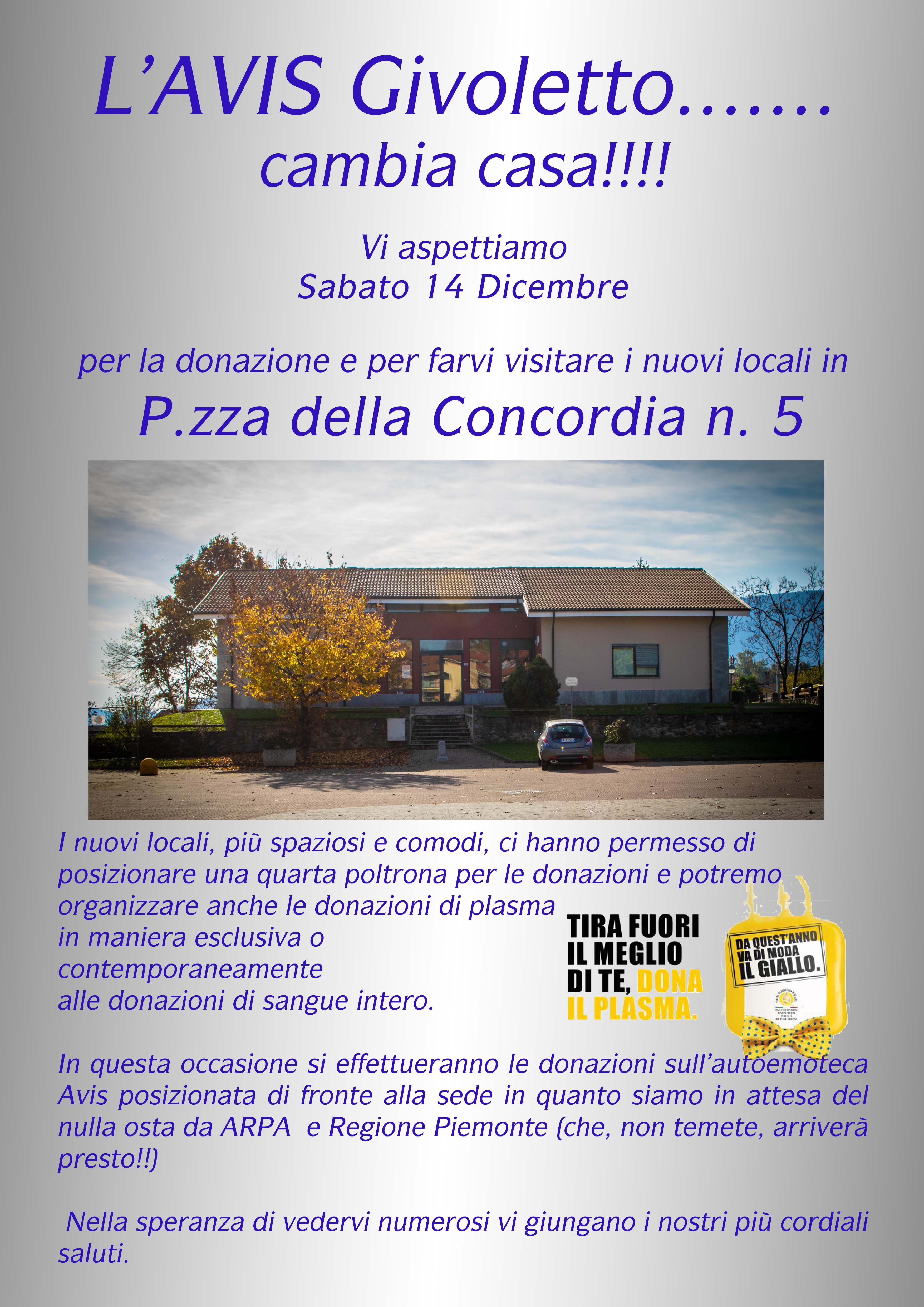 Sabato 14 Dicembre dalle ore 8.00 alle ore 11.30 presso la NUOVA sede Avis Givoletto, Piazza della Concordia 5, chi vuole può partecipare con una donazione alla raccolta sangue. Vi è anche la possibilità di prenotare la donazione attraverso il link: www.avisgivoletto.it