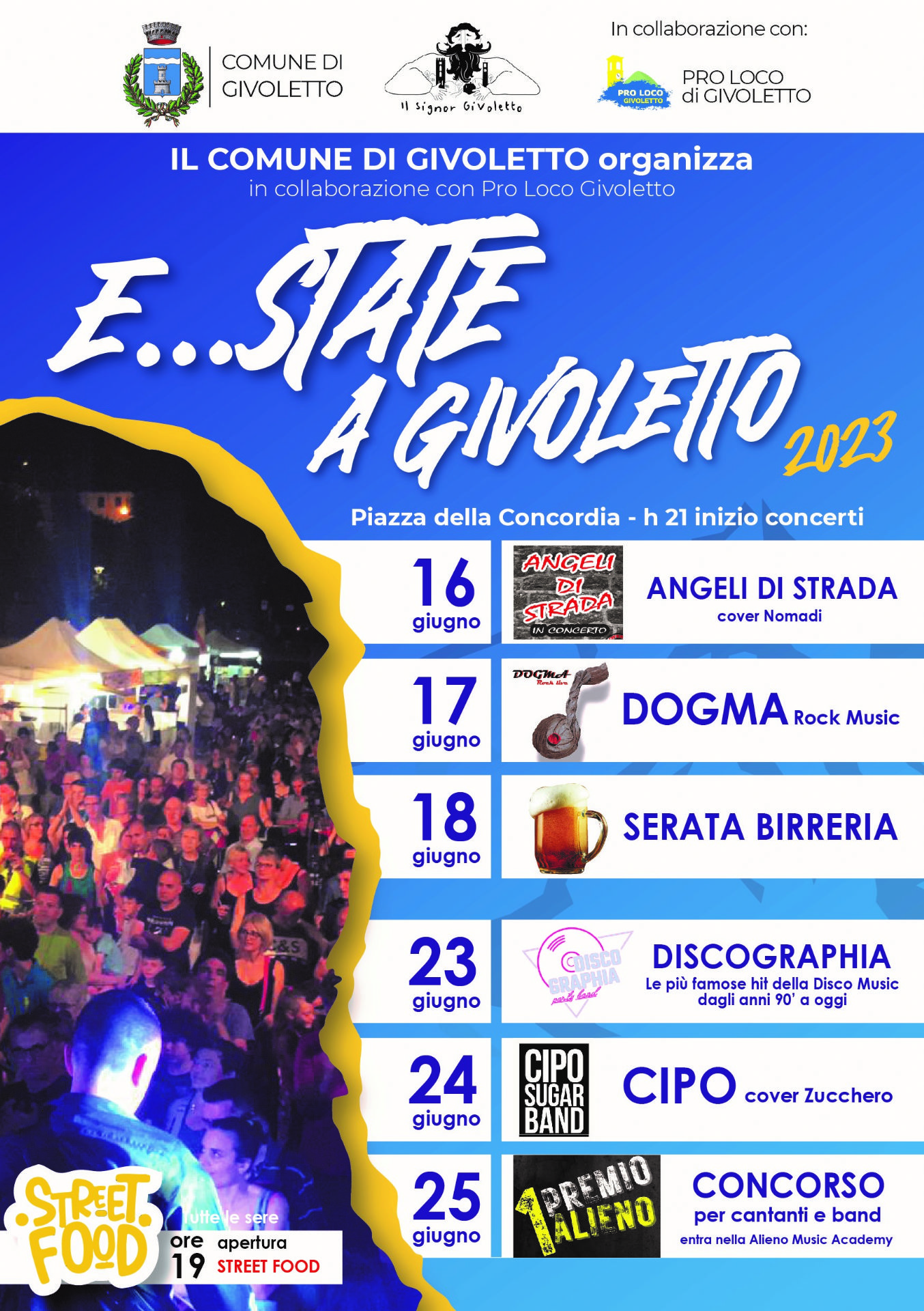 Il tutto contornato con Street Food e Festival della Birra dalle ore 19.00