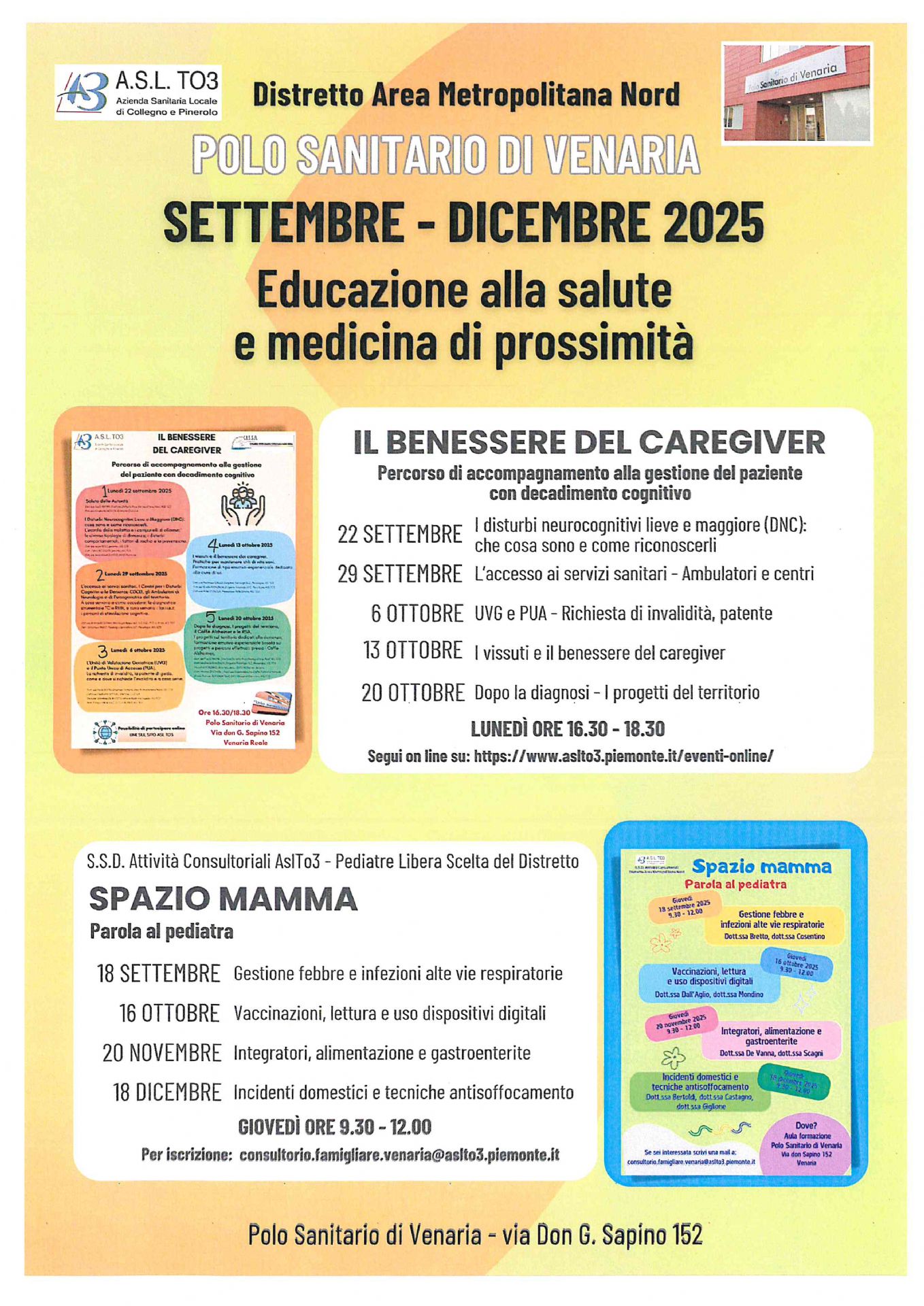 Iniziative del Polo sanitario di Venaria incontri periodo settembre/dicembre 2025