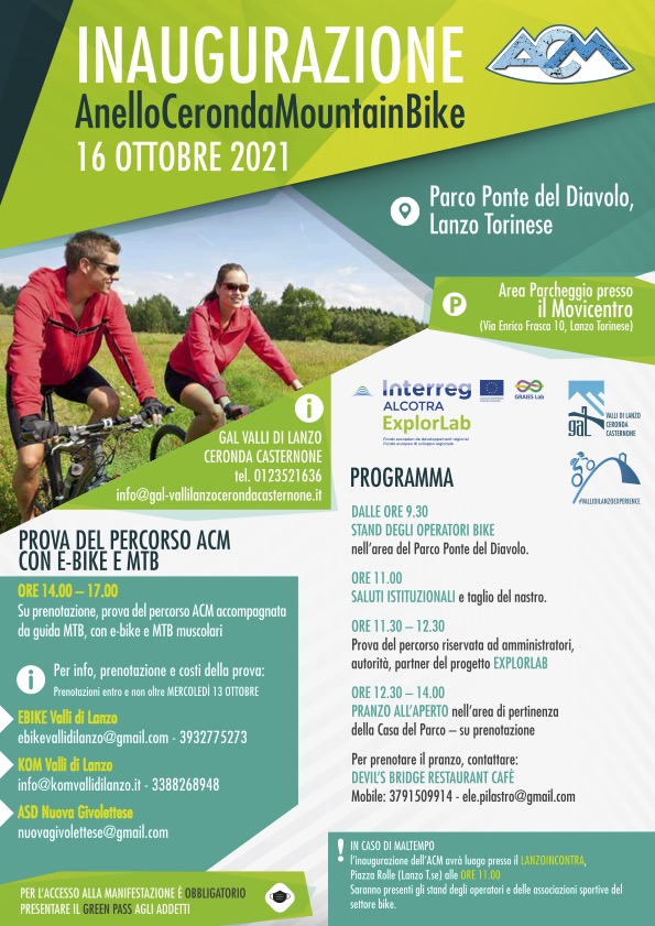 Sarà possibile provare il percorso ACM accompagnati da una guida MTB, con e-bike e MTB muscolari su prenotazione entro, e non oltre, mercoledì 13 ottobrep.v.