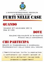 A seguito dei recenti episodi di furto che si sono registrati nelle abitazioni dei Givolettesi, Venerdì 27 Novembre alle ore 21:00 presso il Salone Polivalente di Givoletto, l'Amminstrazione si confronta con i cittadini, raccogliendo proposte e suggerimenti.
