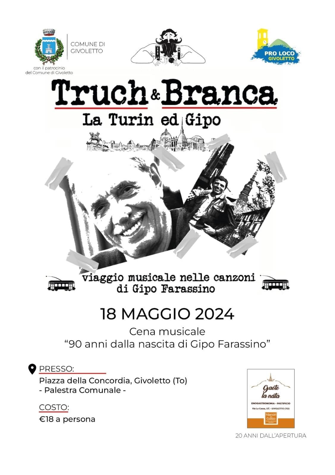 Sabato 18 Maggio presso il Salone Polivalente, cena musicale a 90 anni dalla nascita di Gipo Farassino.