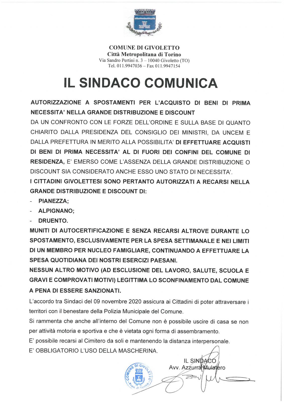 - ACCORDO TRA I SINDACI INVIATO AL PREFETTO DI TORINO[.pdf 347,47 Kb - 13/11/2020]