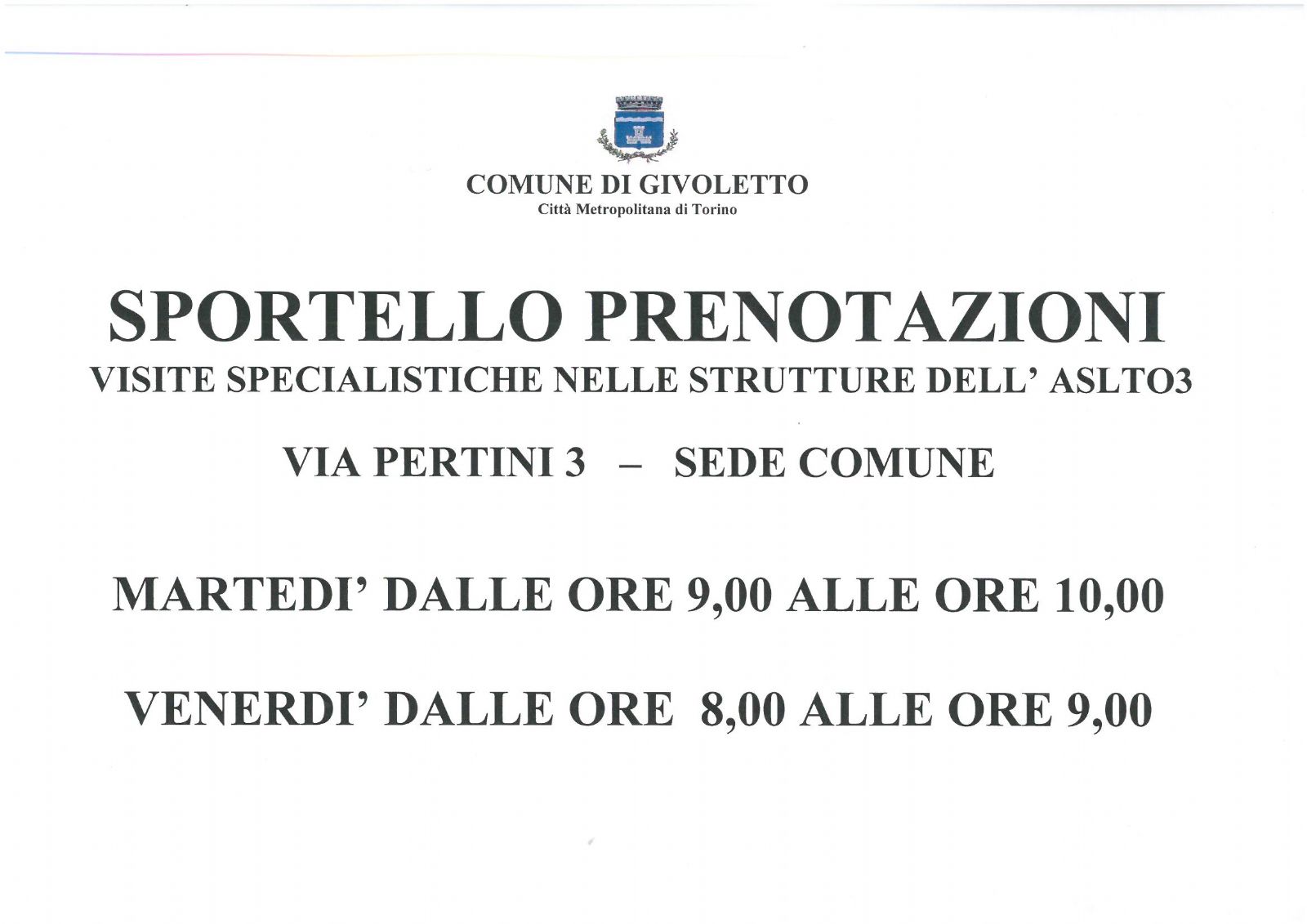 NELLA SEDE DEL COMUNE E' ATTIVO IL SERVIZIO DI PRENOTAZIONI DELLE VISITE SPECIALISTICHE NELLE STRUTTURE DELL'ASLTO3