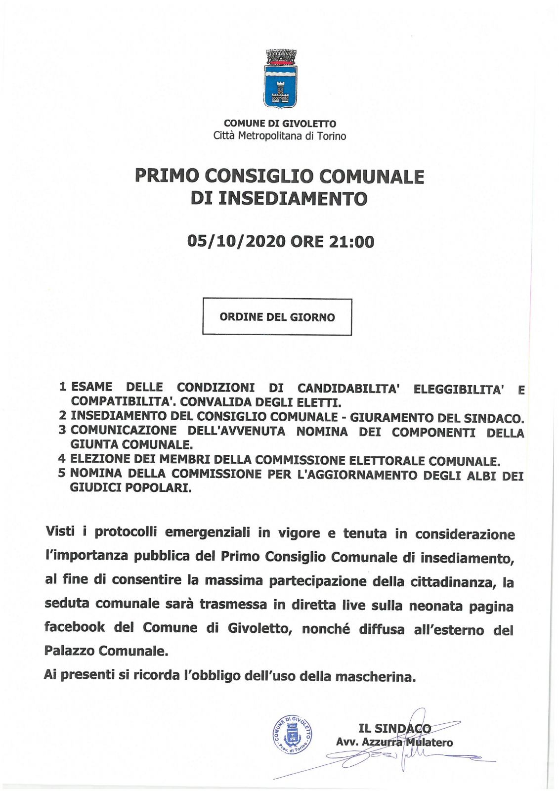 IL PRIMO CONSIGLIO COMUNALE DI INSEDIAMENTO