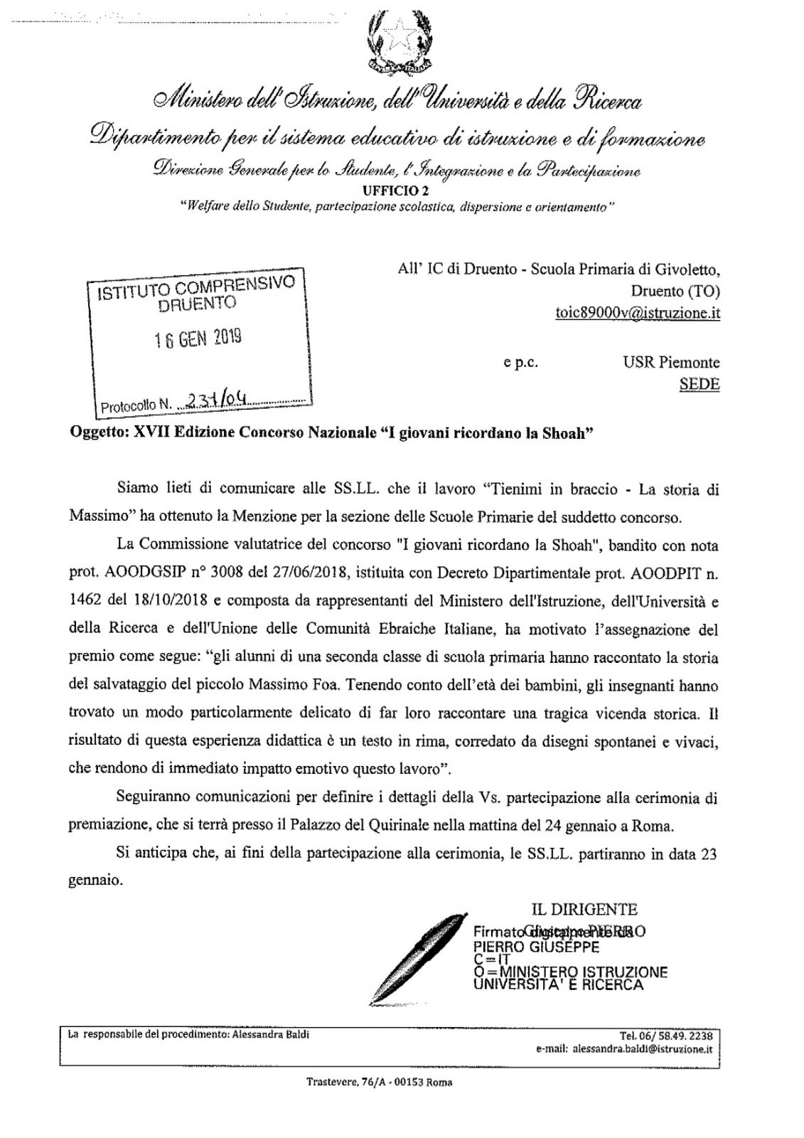 Concorso Nazionale “I giovani ricordano la Shoah” XVII edizione, anno scolastico 2018/2019