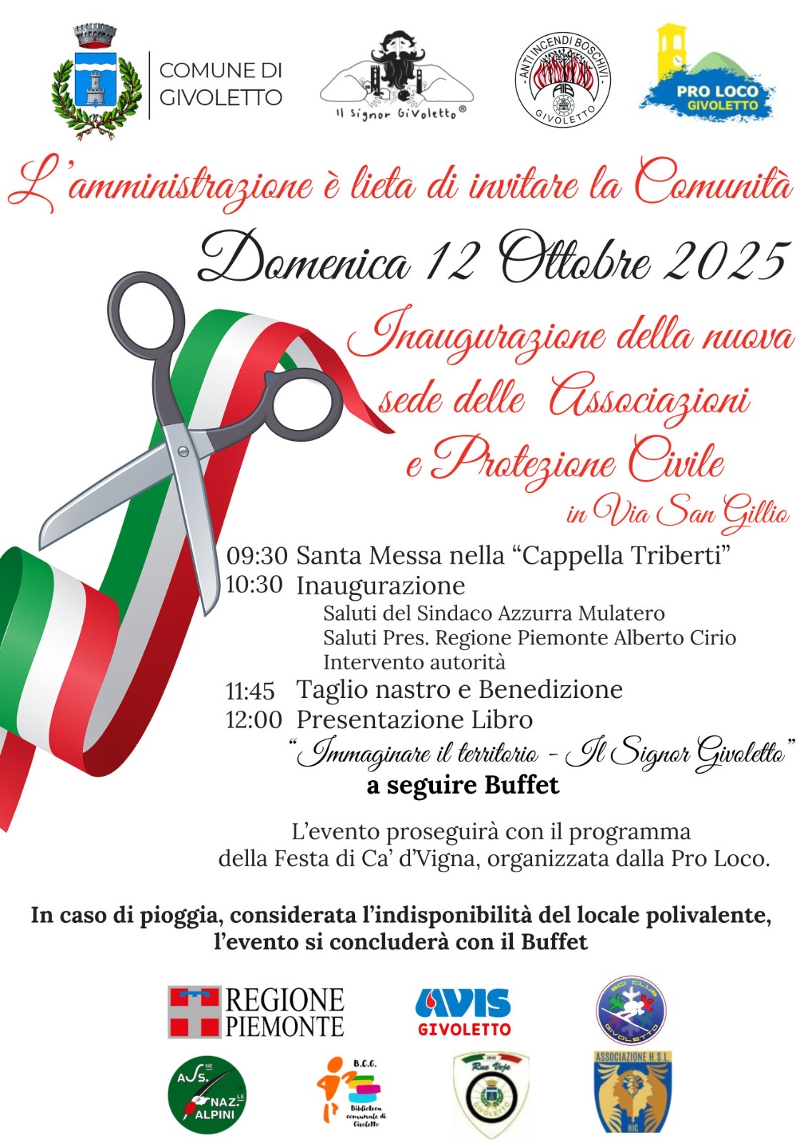 Domenica 12 Ottobre, con la messa e l’inaugurazione del nuovo locale di protezione civile e associazioni di Via San Gillio, appuntamento con la tradizionale festa di Ca' d' Vigna, che quest’anno si terrà in Via San Gillio.