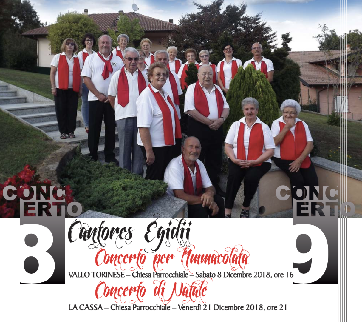 Sabato 8 Dicembre presso la Chiesa Parrocchiale di Vallo Torinese alle ore 16.00, avrà luogo l'ottavo concerto della stagione Autunno-Inverno 2018 ad opera dei Cantores Egidii.
