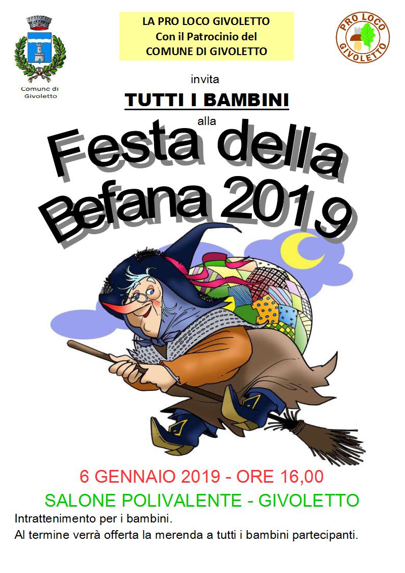 La Pro Loco di Givoletto, in collaborazione con il Comune di Givoletto, invita tutti i bambini alla Festa della Befana il giorno 06/01/2019 alle ore 16,00 presso il Salone Polivalente di Piazza della Concordia a Givoletto.