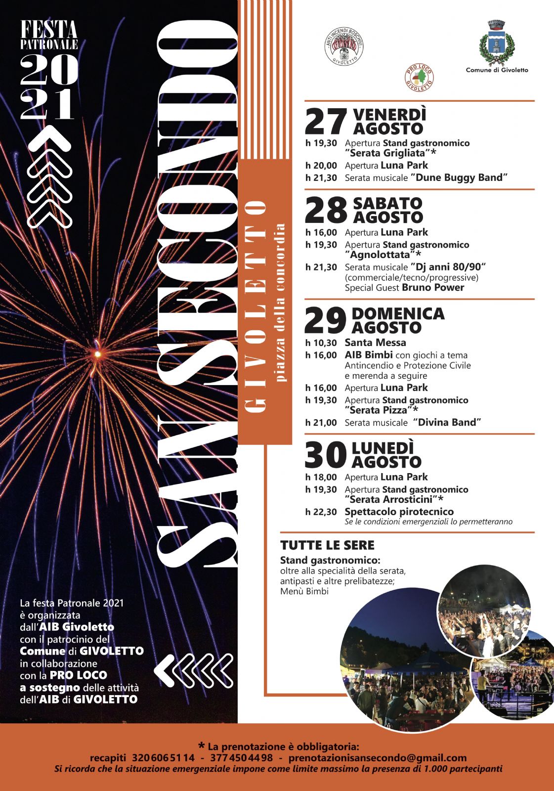 In allegato il programma dell’evento, si ricorda che l'accesso allo stand gastronomico e ai concerti, avviene solo muniti di GREEN PASS E PRENOTAZIONE OBBLIGATORIA.