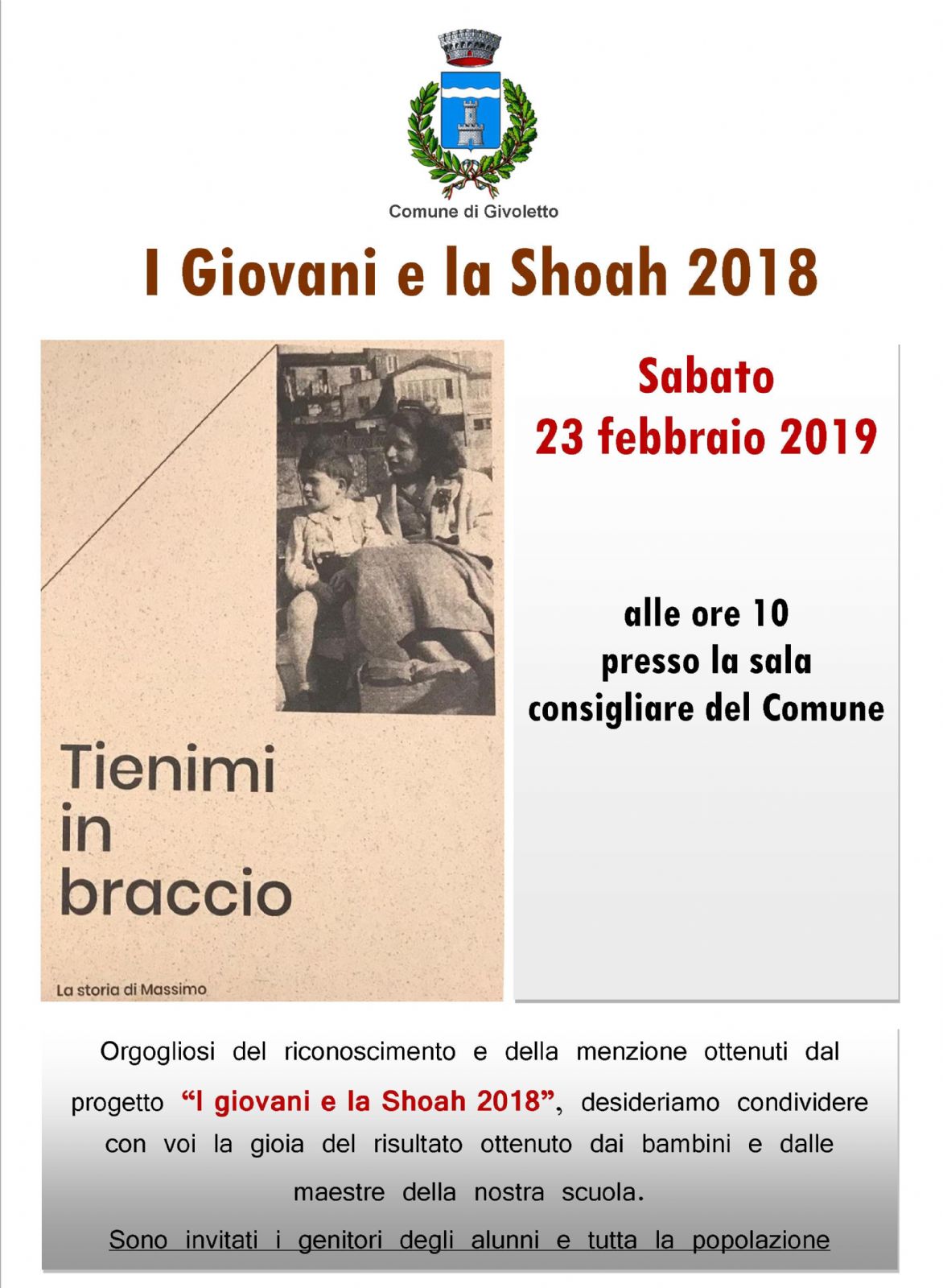 Orgogliosi del riconoscimento e della menzione ottenuti dal progetto "I giovani ricordano la Shoah 2018", desideriamo condividere con Voi la gioia del risultato ottenuto dai bambini e dalle maestre della nostra scuola. Sono invitati i genitori degli alunni e tutta la popolazione, Sabato 23 Febbraio alle ore 10 presso la Sala Consiliare del Comune di Givoletto.