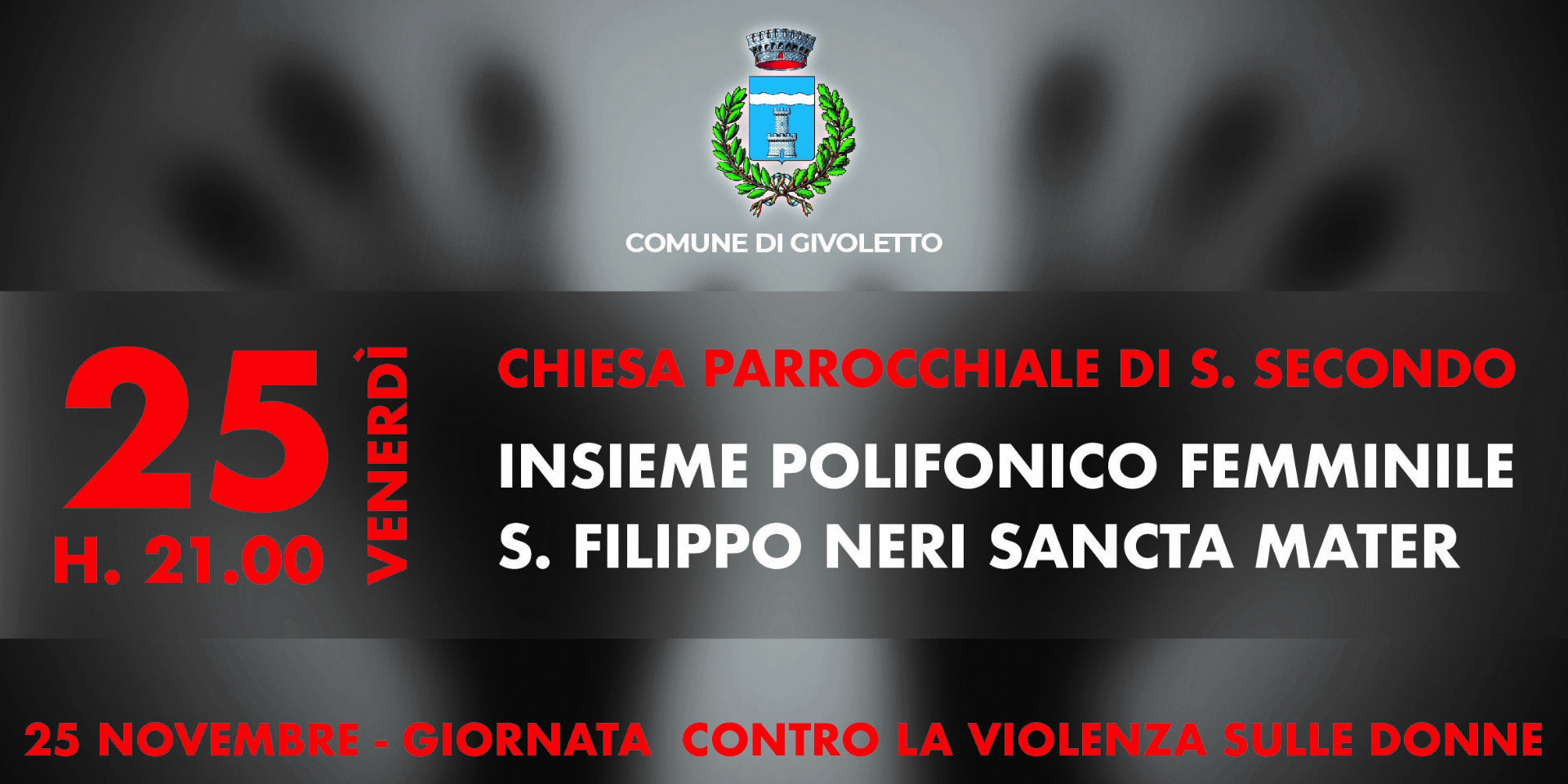 Venerdi 25 Novembre alle ore 21.00 presso la parrocchia di Givoletto, concerto al femmile in occasione della giornata contro la violenza sulle donne.