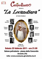 Sabato 25 febbraio 2012 alle ore 21 presso il locale polivalente di piazza della Cocordia a GIVOLETTO si terrà la rappresentazione teatrale a cura della compagnia Campo Theatro de "LA LOCANDIERA" di C. Godoni.