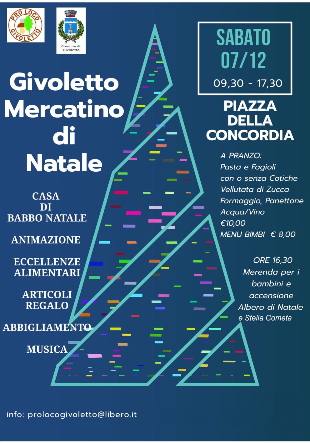 Sabato 7 Dicembre dalle ore 9.30 alle ore 17.30 presso Piazza della Concordia, si terrà la terza edizione dei mercatini di Natale. Mercatini di prodotti tipici, artigianato artistico, stand gastronomici. Sarà allestita la casa di Babbo Natale e la giornata verrà allietata da buona musica.