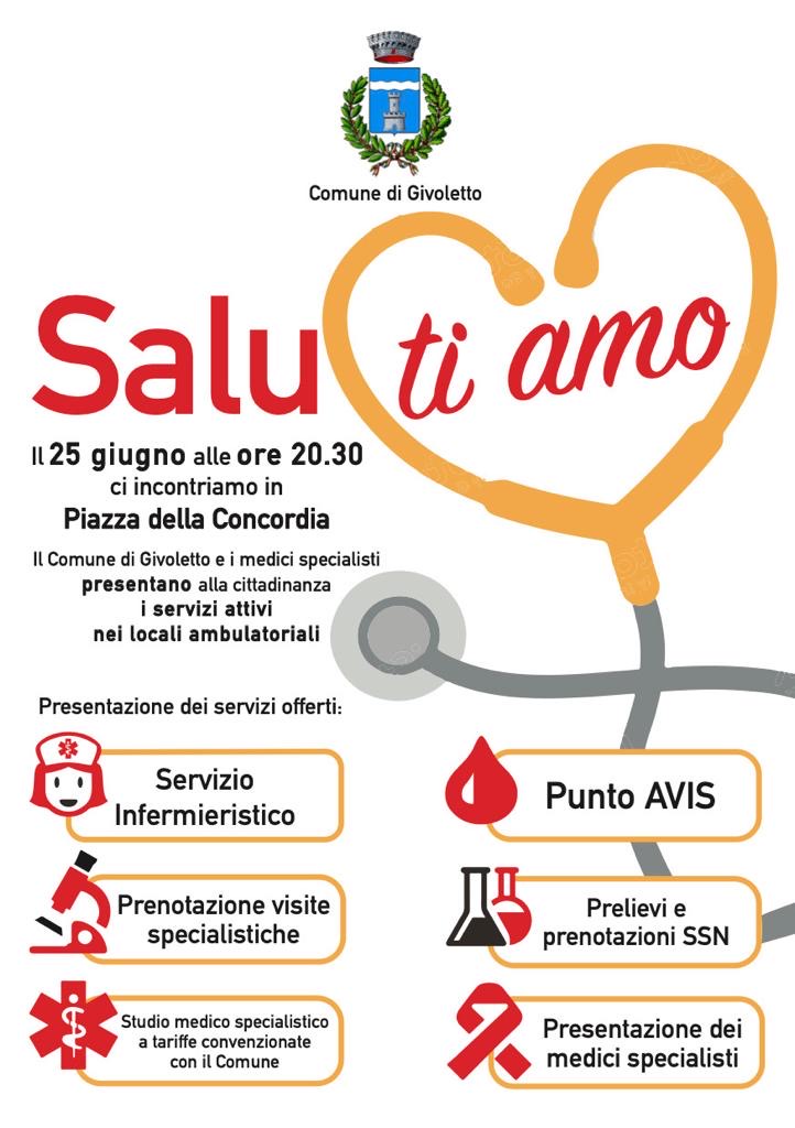 Il giorno 25 Giugno alle ore 20.30 presso Piazza della Concordia, il Comune di Givoletto e i medici specialisti presentano alla cittadinanza i servizi attivi nei locali ambulatoriali.
