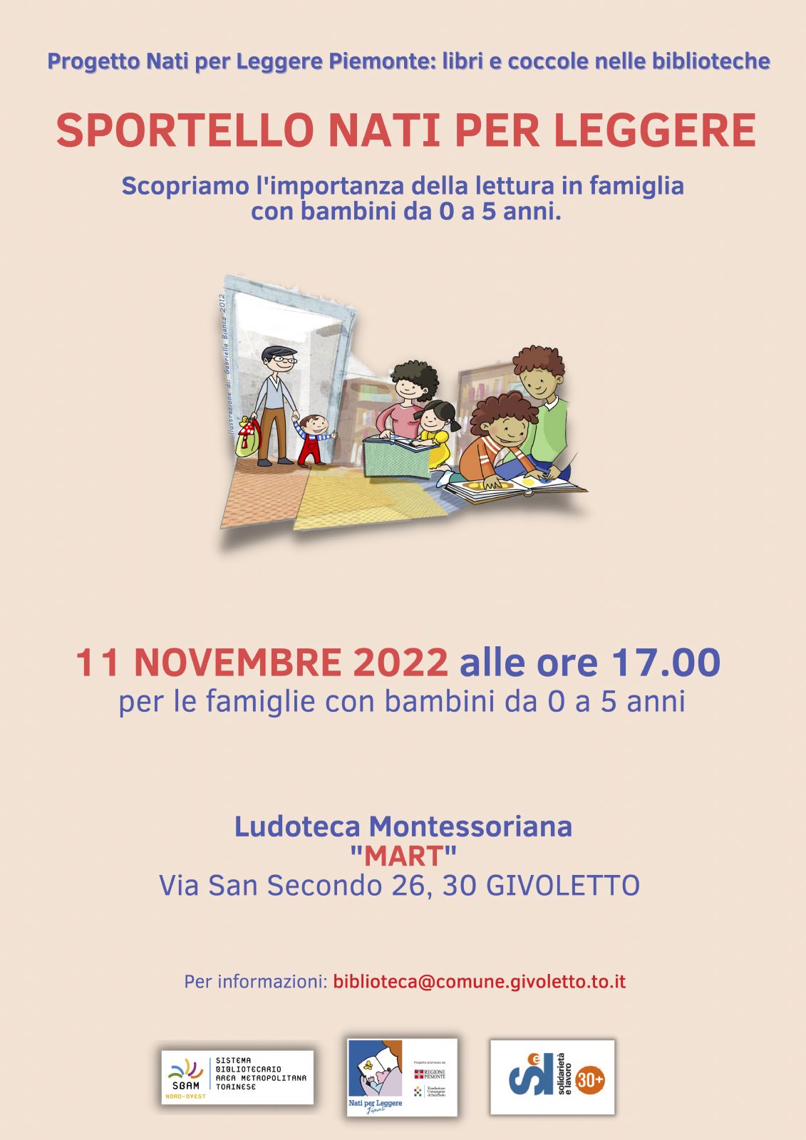 Scopriamo l'importanza della lettura in famiglia, venerdì 11 novembre alle ore 17.00 presso la ludoteca Mart in Via San Secondo 26.