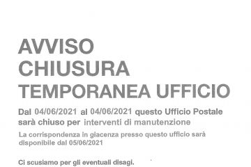 POSTE ITALIANE - AVVISO DI CHIUSURA UFFICIO POSTALE DI GIVOLETTO