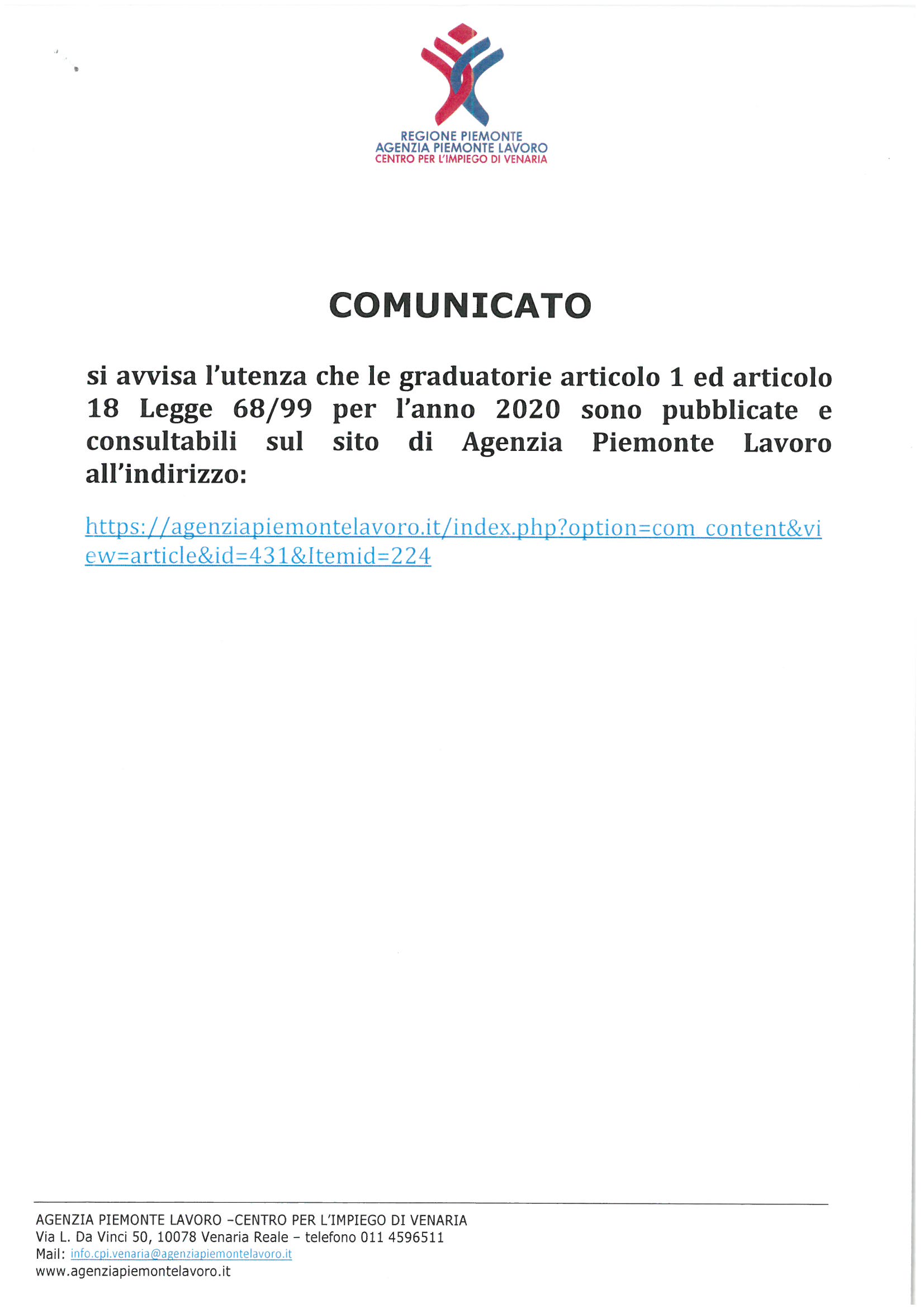 GRADUATORIE ARTICOLO 1 E ART.18 DELLA LEGGE 68/99